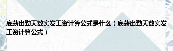 大家好,小纵来为大家解答以上问题。底薪出勤天数实发工资计算公式是什么,底薪出勤天数实发工资计算公式这个很多人还不清楚,现在一起跟着小编来瞧瞧吧!