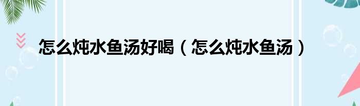 关于怎么炖水鱼汤好喝,怎么炖水鱼汤的介绍到此结束,希望对大家有所帮助。