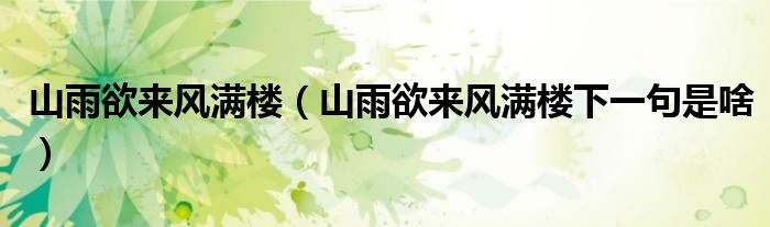 关于山雨欲来风满楼,山雨欲来风满楼下一句是啥的介绍到此结束,希望对大家有所帮助。