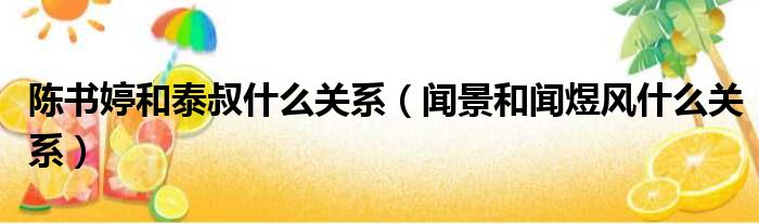 大家好,小纵来为大家解答以上问题。陈书婷和泰叔什么关系,闻景和闻煜风什么关系这个很多人还不清楚,现在一起跟着小编来瞧瞧吧!