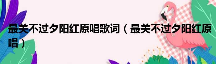 关于最美不过夕阳红原唱歌词,最美不过夕阳红原唱的介绍到此结束,希望对大家有所帮助。