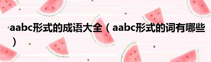 关于aabc形式的成语大全,aabc形式的词有哪些的介绍到此结束,希望对大家有所帮助。