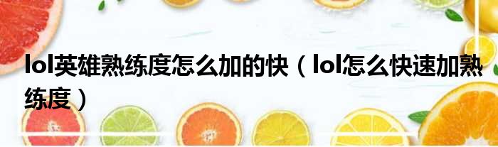 关于lol英雄熟练度怎么加的快,lol怎么快速加熟练度的介绍到此结束,希望对大家有所帮助。
