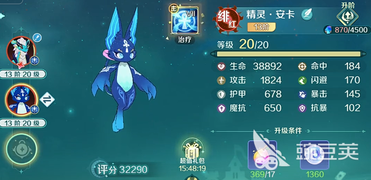 比如说如果大家带的是其中雷威电龙,就是一个控制效果,以及这个安卡,可以负责角色的一个治疗回血不对,那就是说还可以去养什么呢?就是一开始给的这个喵灵库姆,喵灵库姆的话是非常适合输出职业的,可以去减少角色8%的一个防御,以及就是说再搭配上战神创击,直接给大家带来一个2.6秒的无敌状态,这个2.6秒无敌状态,升到绯红是2.8秒,可以看一下往后面升的越高,它给大家持续的时间就越长,控制在这里就不敌了,所以这个其实就相当于是奥黛丽有很多人现在都不知道,这两个是可以去用的。