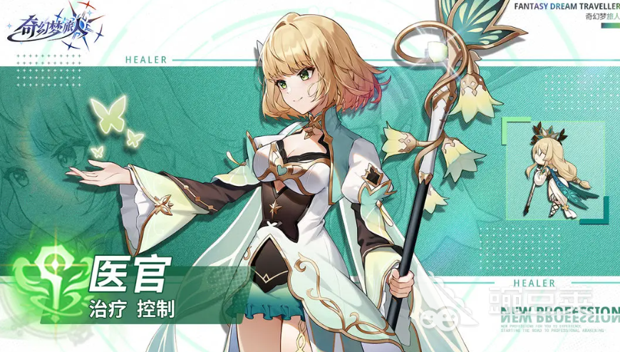 那么第四个就是比较适合佛系玩家体验的,或者说是小姐姐适合来玩儿的一个职业,叫做医官,顾名思义也是这款游戏里面唯一的奶妈,团队的救命稻草,尤其是在一些比较高难度的boss战中,或者是这个团组当中基本上一个队伍里面啊,就必须要有一个奶妈,所以说需求量也是比较大的,如果说是零氪玩家,又想混到第一梯队里边,那么就直接就玩医官,是没有任何问题的。