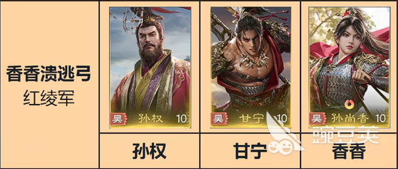 最后是以孙尚香为核心的溃逃弓的流派啊,首先是孙尚香提供双S的这个猛攻,系数最高能叠到50%乘以9次,并且若对方处于溃逃状态,则有概率无视防御,450的一个收益,并且有概率防御,那这个就是孙尚香的效果,但是要打满也不是那么容易,但是孙尚香不适合当主将,技能没那么厉害,所以孙尚香用的话是当副将,当主将很一般,孙尚香比较适合搭配的就是甘宁,甘宁的正常提升伤害,并且每个主动技能都会直接附加溃逃,两个主动技能基本上每回合都会附加溃逃的,所以说这个情况下,那个孙尚香就可以稳稳打出伤害,然后这个正面状态怎么来呢?其实除了各种技能之外,孙权也是可以给自己叠3种属性的,如果没有孙权的时候,就再上个别的东西也可以。