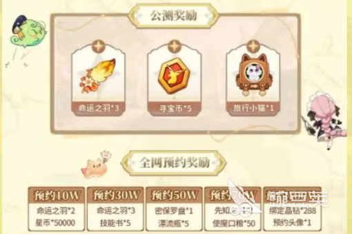 公测福利还是比较丰富的,现在只需要输入兑换码,就可以获取,能解锁基础的福利,并且还会有专属的礼包。在专属的礼包中,有道具,还有资源,就可以直接一键到账,让玩家在冒险时会变得更加的顺畅。还有等级冲刺福利,如果账号下面第1个创建的角色升级到37级,就可以在邮箱领取全网预约福利,还有公测奖励。在公测专属奖励中就会包括命运之羽,而且还有三个,另外还有超萌伙伴旅行小猫。