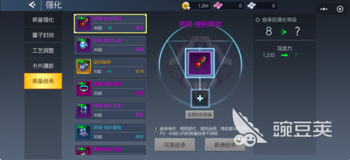 第五部分是装备继承,玩家要想完成装备的继承,需要记忆芯片和完美记忆芯片,在第一部分当中提及到了这两种芯片,这两种晶片在第五部分中可谓是核心,这两种芯片一方面可在关卡中获得,另一方面可用卡片晶核合成。