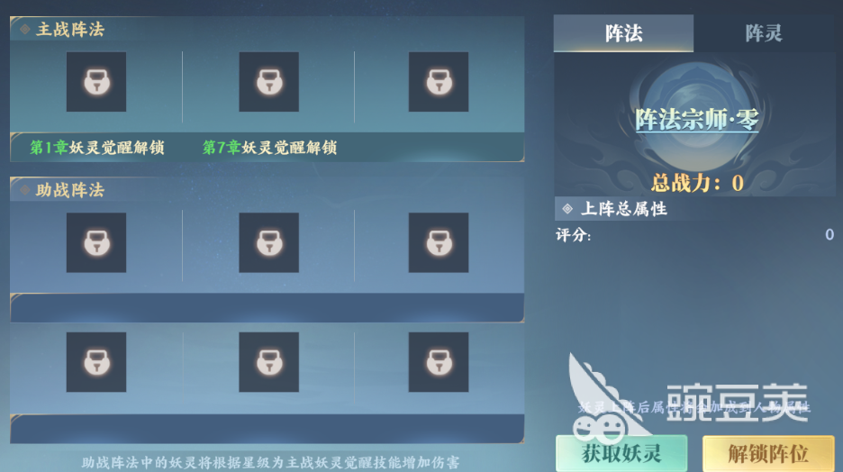 所有妖灵均携带一项觉醒技,需在战斗中积攒灵力值方可释放,具有显著战术价值。此外,每只妖灵自带基础属性,该属性将直接叠加至主角面板。战斗时,玩家最多可配置9位妖灵:其中3位位于主站位,随主角共同参战,既提供属性增益,亦可主动施放技能;其余6位置于备战位,仅生效属性加成,不参与技能释放。