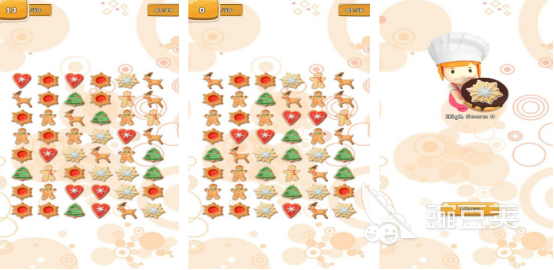 本作采用高密度关卡设计,共包含海量独立挑战章节。每关均设有时限目标与基础分数门槛。游戏界面呈现密集堆叠的圣诞主题图标——如铃铛、雪球、驯鹿角等,玩家通过手指滑动连接三个或以上相同图案实现即时消除。连消次数越多,单次得分加成越显著,并同步计入全局积分榜。