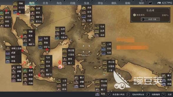 来到东南亚的港口,这里就是香料交易品的天堂,有豆蔻皮,肉豆蔻、丁香,肉桂,姜黄,沉香,还有龙延香,另外还有砂糖以及稻米。东亚港口就能体现出大明和日韩的特色,这里的核心交易品是茶叶、丝绸以及瓷器。青花瓷,还有白瓷也是比较受到大家关注的,当然别忘记的是,还有人参以及麝香。美洲大陆的交易品则充满着异域风情,例如印加玫瑰和玛卡,南美洲的奎宁,还有可可以及烟草,这些都是当地独有的交易品。那别忽视的就是加勒比海的朗姆酒,还有龙舌兰酒,以及番薯,都是要关注的。