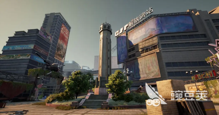 第二区域“解放碑”采用多层立体建筑结构,涵盖地下通道、露天广场及高层观景平台,地形复杂度极高。其地理中心设有一处高安防等级金库,内含镭钻类战略物资及火金宝箱,因资源稀缺性与位置枢纽性,将成为开局阶段高频交火热点。