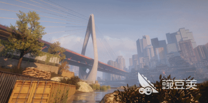 地图全局由一座主跨江大桥及两座辅助吊桥构成纵向交通骨架,三座桥梁横贯东西,形成天然分界与战略支点。其中吊桥通行口均配备独立权限验证机制,需持有对应类型钥匙方可开启通行权限。