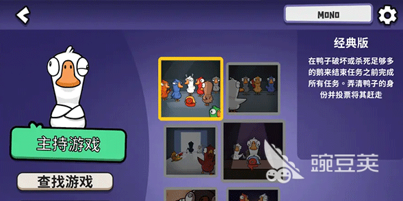 鹅鸭杀手游游戏规则还是比较简单的,要说很有趣的,那应该是侦探猎场娱乐模式,会跳出阵营的框架,所有的玩家都是侦探,可以自由的选择是不是成为凶手?喜欢这款游戏,那就关注豌豆荚平台,可以搜索游戏之后下载体验游戏。