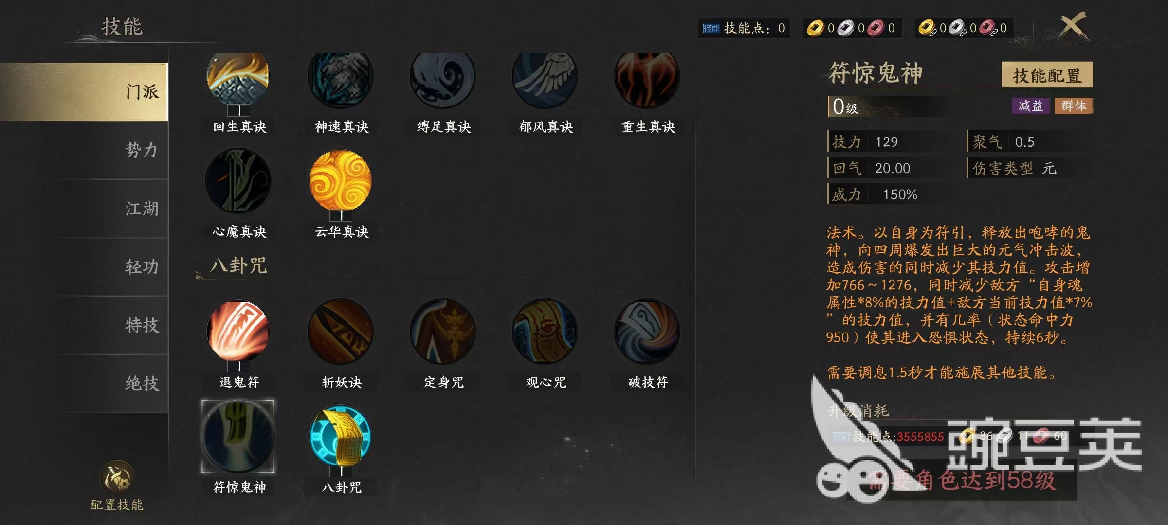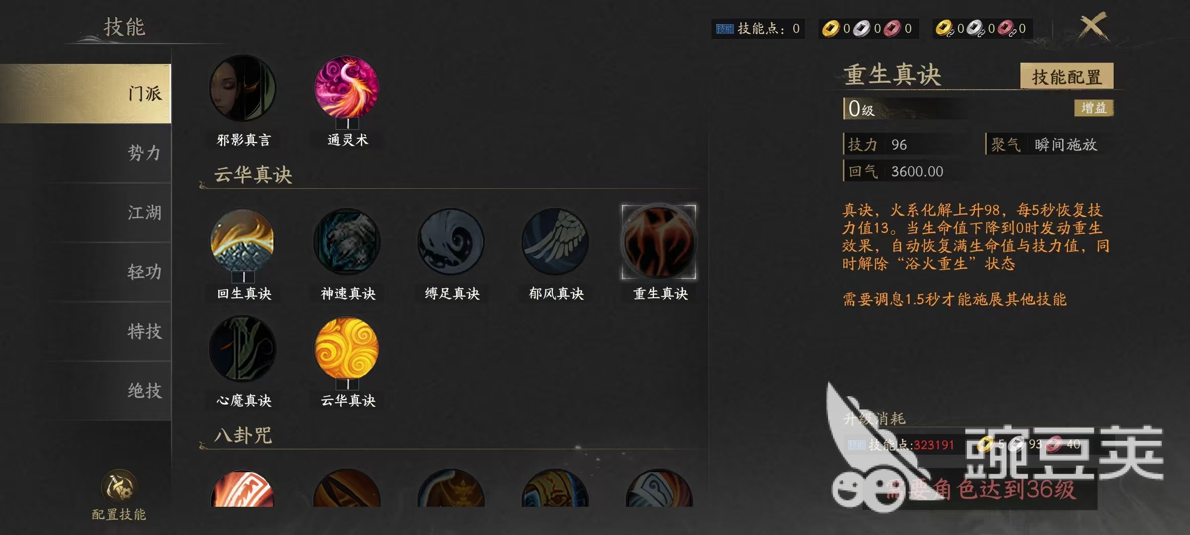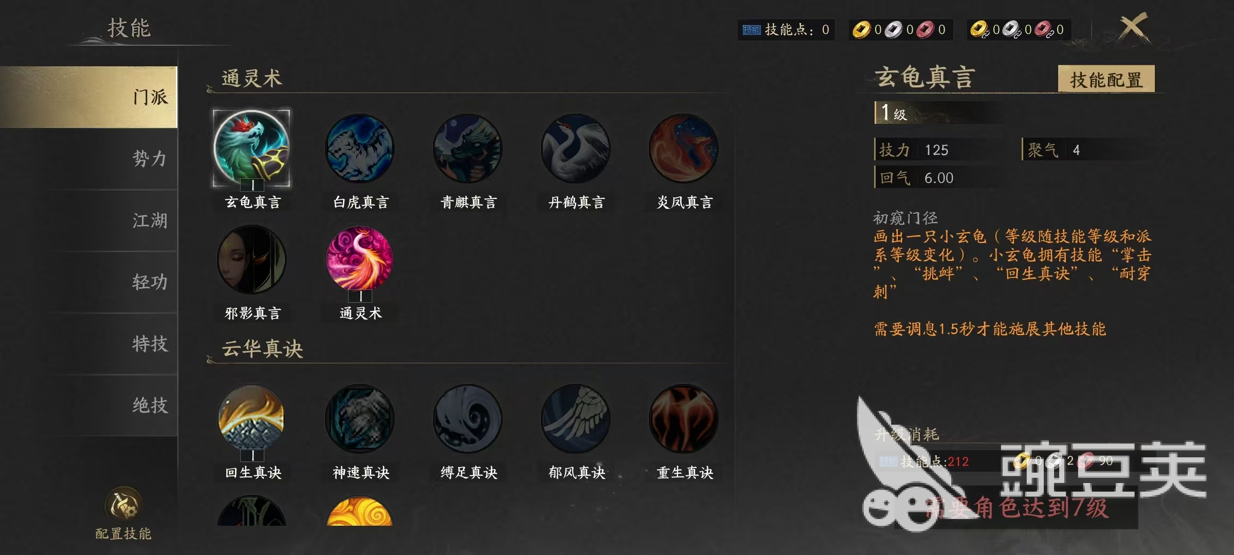 技能体系上,太虚观划分为三大类:通灵术、云华真诀与八卦咒。其中,通灵术专注灵兽召唤,涵盖玄龟真言、白虎真言、丹鹤真言等子技能,对应召唤玄龟、白虎、青麟、丹鹤等不同属性灵兽,各具专属技能效果与战场职能;云华真诀侧重辅助增益,包括回生真诀、神算真诀、重生真诀、心魔真诀等,覆盖治疗、减伤、状态强化及负面干扰等多种功能;八卦咒则主攻范围法术输出,代表技能“符惊鬼神”可对周身区域释放高爆发冲击波。所有技能随角色等级逐步解锁,实际搭配需结合CD管理与场景需求进行动态调整。