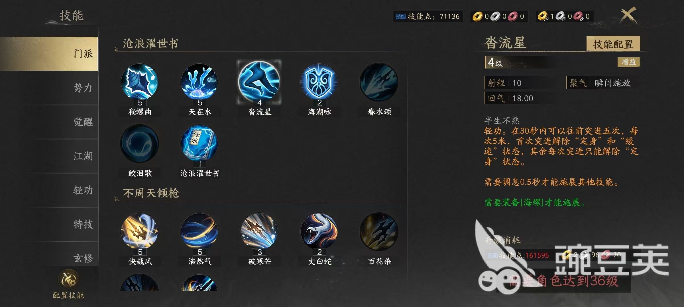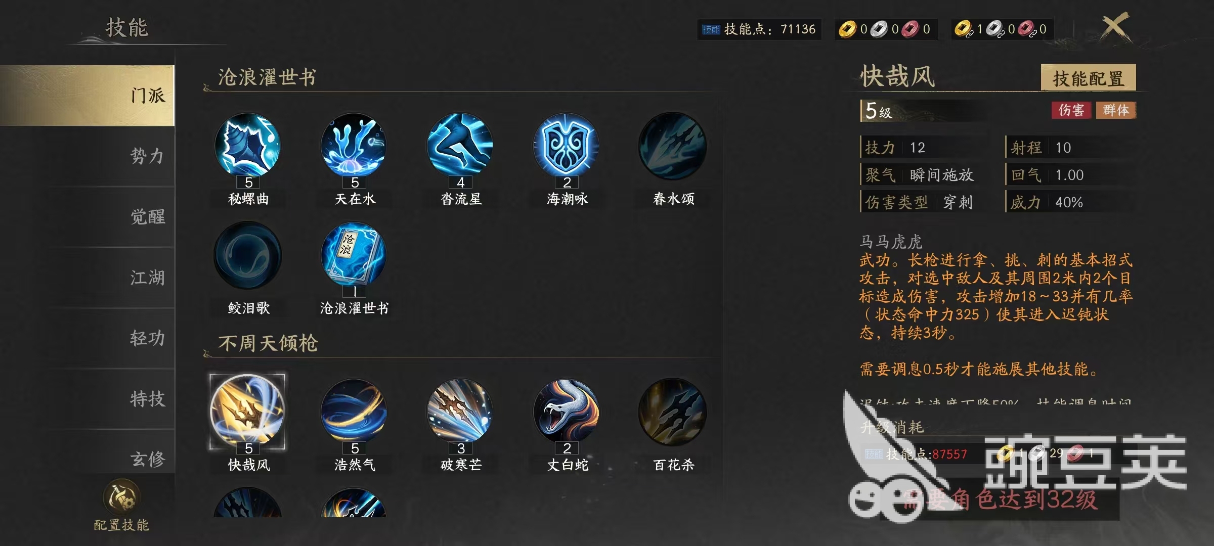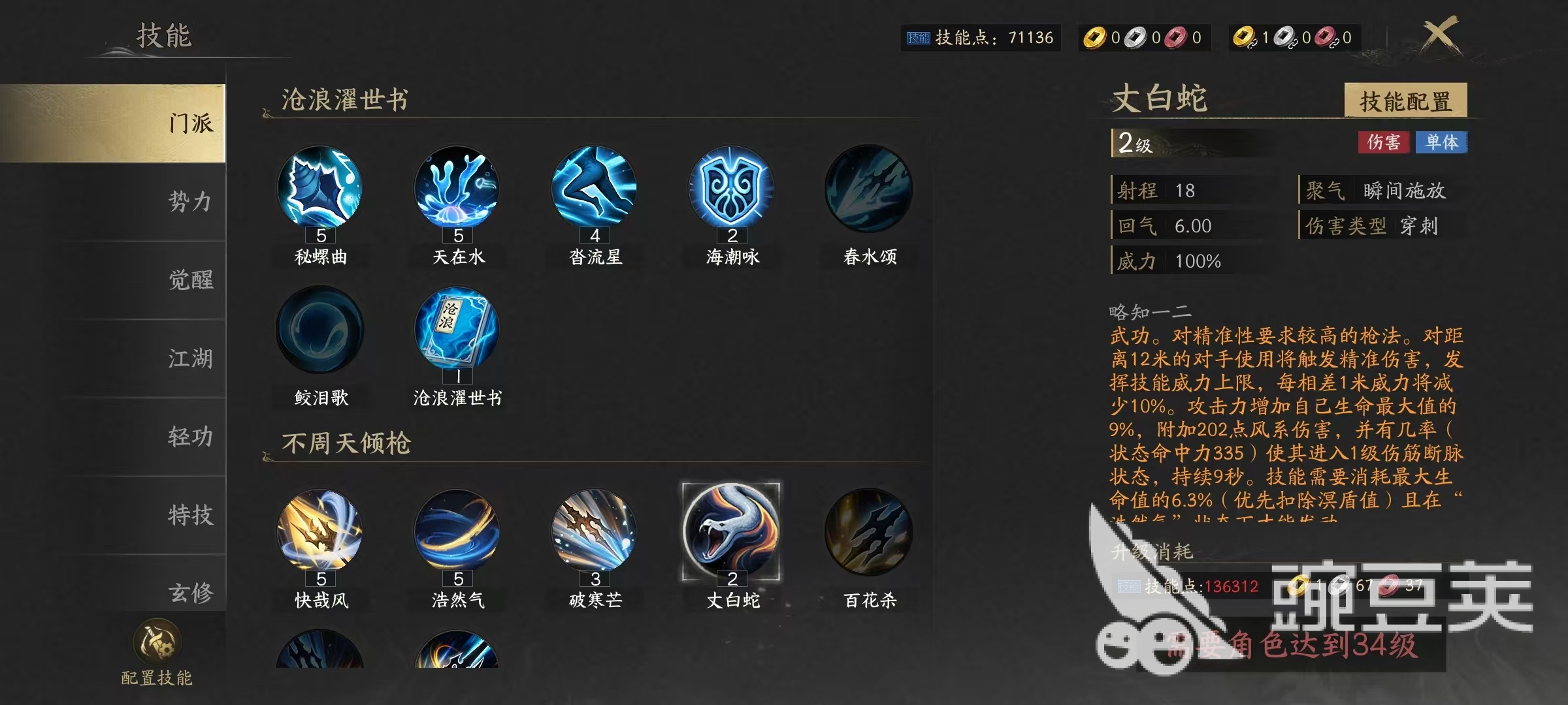 技能体系方面,玄溟拥有五项关键主动技能:首推“沓流星”,作为核心位移技,具备多段突进效果,可向不同方向连续闪现,并自动清除定身、缓速等负面控制状态,是连招起手、反打脱身或衔接爆发的枢纽技能;第二为“丈白蛇”,主输出技,伤害随目标距离动态变化,同时附带破甲与生命值转化攻击力效果,需严格把控施放距离以达成最大收益;第三是“浩然气”,物理类心法,依据力属性加成提升基础物理攻击;第四“百花杀”兼具近身伤害与硬控能力,命中后可限制敌方行动;第五“快哉风”为基础物理攻击技能,命中后有概率附加迟钝效果,是压制对手走位的重要辅助手段。