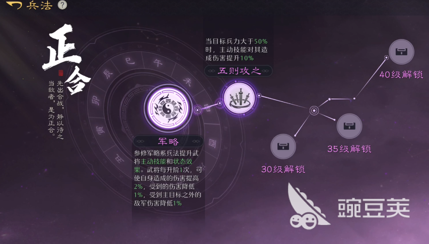 想要解锁游戏里的兵法系统,首先要把自己的等级提升到25级,这时候才能利用兵法,让角色在挑战的时候有更优秀的表现,等解锁了兵法系统之后,玩家就可以针对每一个角色,选择不同的兵法使用,这样不管是角色的能力,耐力都能得到提升,在挑战过程中,这些角色也会有更强的战斗力,兵法更重要的作用是可以帮助玩家改变一个角色的能力,可以给一些输出能力比较强的角色,增加提升武力的兵法,这样他们在战斗的时候就能打出更高的伤害。
