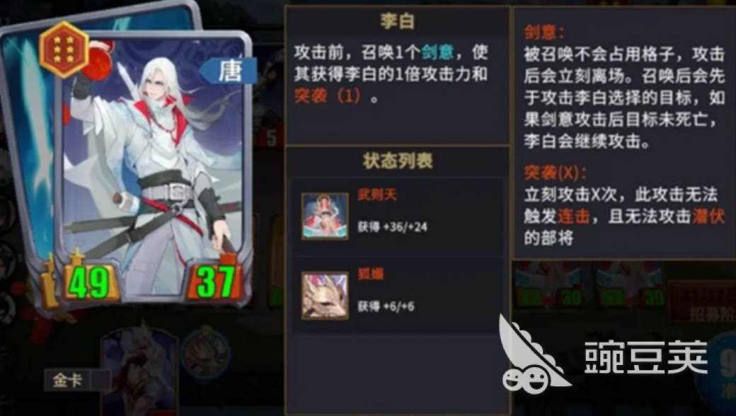 这套阵容的核心成员主要有武则天,秦琼,上官婉儿,李白以及长孙无忌,其中武则天是最关键的角色,因为武则天的技能板本来就带有专属的鼓舞技能。而且这个技能不是单纯性的属性数值加成,而且能够精准的适用在唐阵营中,可以说是辅助神器。在实战效果中,武则天的鼓舞效果可以和友方的输出角色形成完美的联动,当友方发起进攻时,就会立马触发这个鼓舞效果,不仅可以增加暴力率,还可以增加攻速,有效提升友方的整体输出效率。