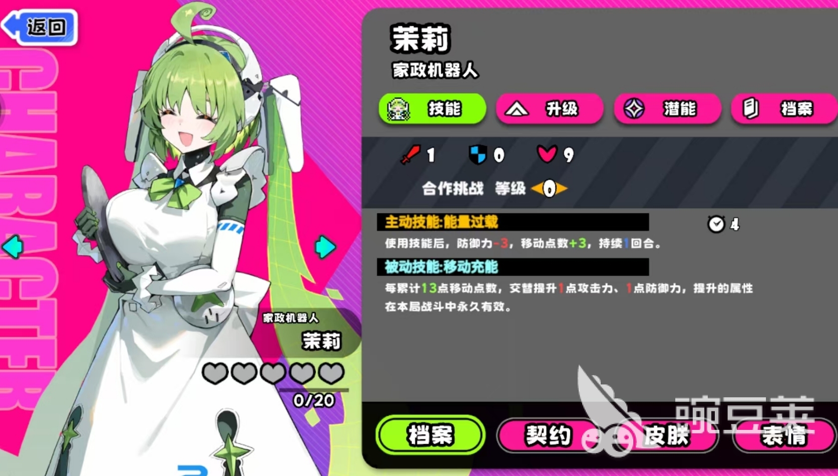 茉莉在使用主动技后虽然会令防御降低3点,但主动技效果结束后就能恢复,而且所加的移动力还能搭配被动移动充能来为茉莉提高属性,且被动带来的属性提升会全局生效,无法被强制消除,使她越打到后面属性越高,在持久战里甚至能成长为全场属性数值最为夸张的boss。