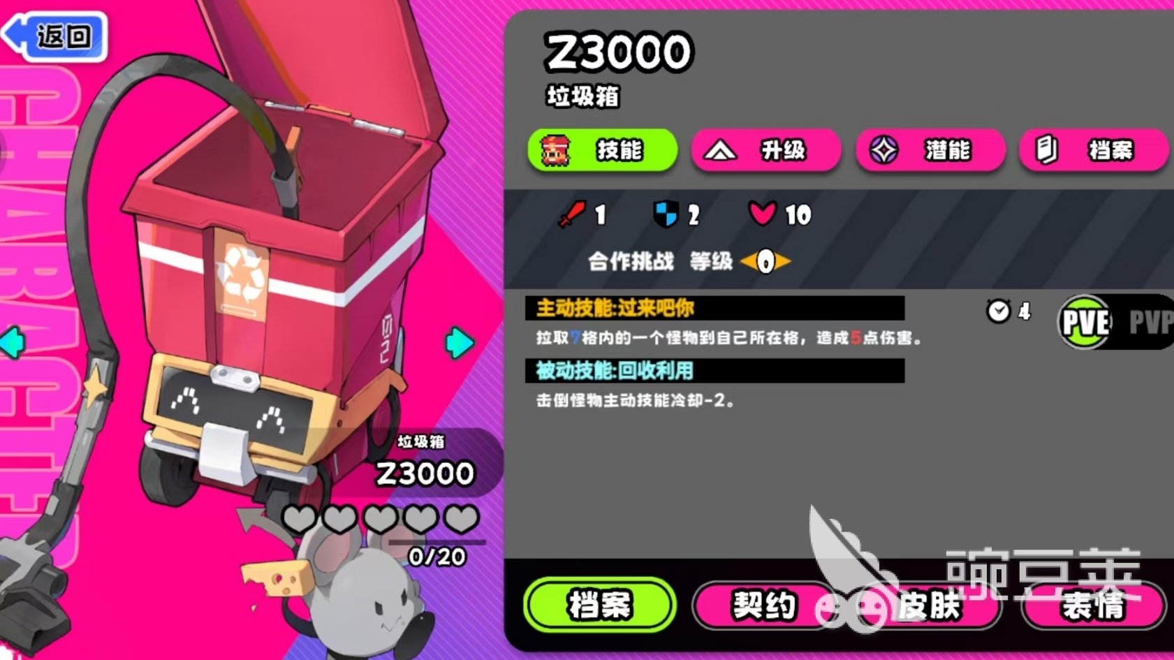 Z3000有着可将敌人拉到自己近前造成伤害的能力,在合作模式里可用此技能来快速清除残血小怪,击倒后更是可让技能冷却减两回合。而在标准模式里该技能更是可以直接让对手强制进行位移,若对手刚好要去初始点或中心点升星,强制他位置会令他极为难受,也能打乱他的节奏。