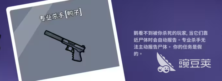 如果是鸭子阵营里面代表的就是坏人阵营,里面当中大家其实比较适合去玩专业杀手,因为专业杀手作为一个坏人的身份,大家可以作为目前玩家的击杀者,来找到当前想要击杀的玩家,然后将其杀死之后不让其他的人靠近这个尸体,当然大家不能主动靠近尸体的时候,最好是在击杀敌人的时候,就将敌人的尸体进行转移,不让其他人快速靠近,这样也可以洗脱掉自己的罪名以及嫌疑。