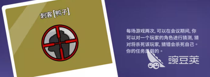 那么第四个就是刺客,刺客这个身份的话,一般情况下是容错率比较大的,因为身份的技能,在1级里面会有两次机会可以使用,技能使用的话可以在快速判断对面角色身份的时候直接将击杀掉,这样的话,大家只要确认好对面的身份,就可以使用这样的情况来攻击敌人,当然了,如果大家选错角色,选择己方的角色或者是中立阵营的角色,那么这个技能则会反过来将刺客自己淘汰了,所以在一场战局里面,他的两次机会都要好好用。