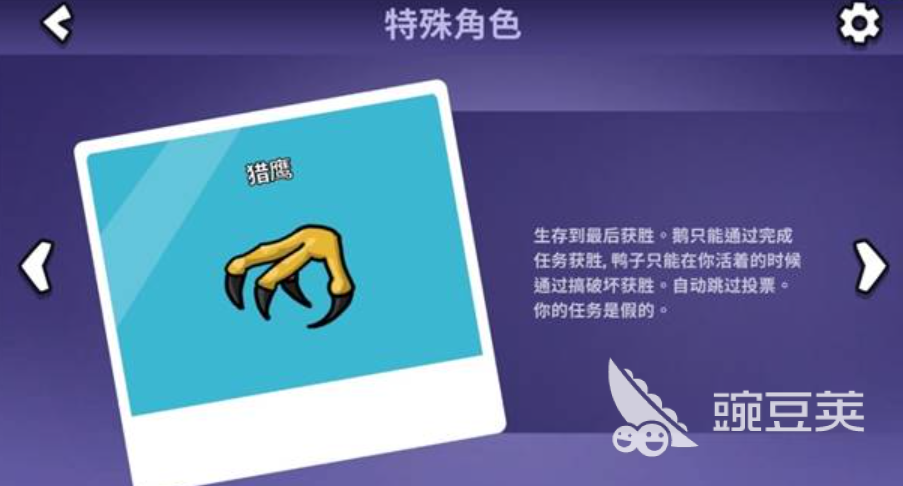 第二个为大家推荐的身份是秃鹫,秃鹫在中立角色当中是需要发现目前已经被攻击掉的尸体,这类尸体大家可以利用秃鹫的技能直接吃掉,当然了,如果场上已经有人被击杀掉的话,那么此时画面当中会有一个箭头的,其实是尸体前所在的位置,所以大家只要吃够其中的尸体数量,就可以满足自己的获胜条件。