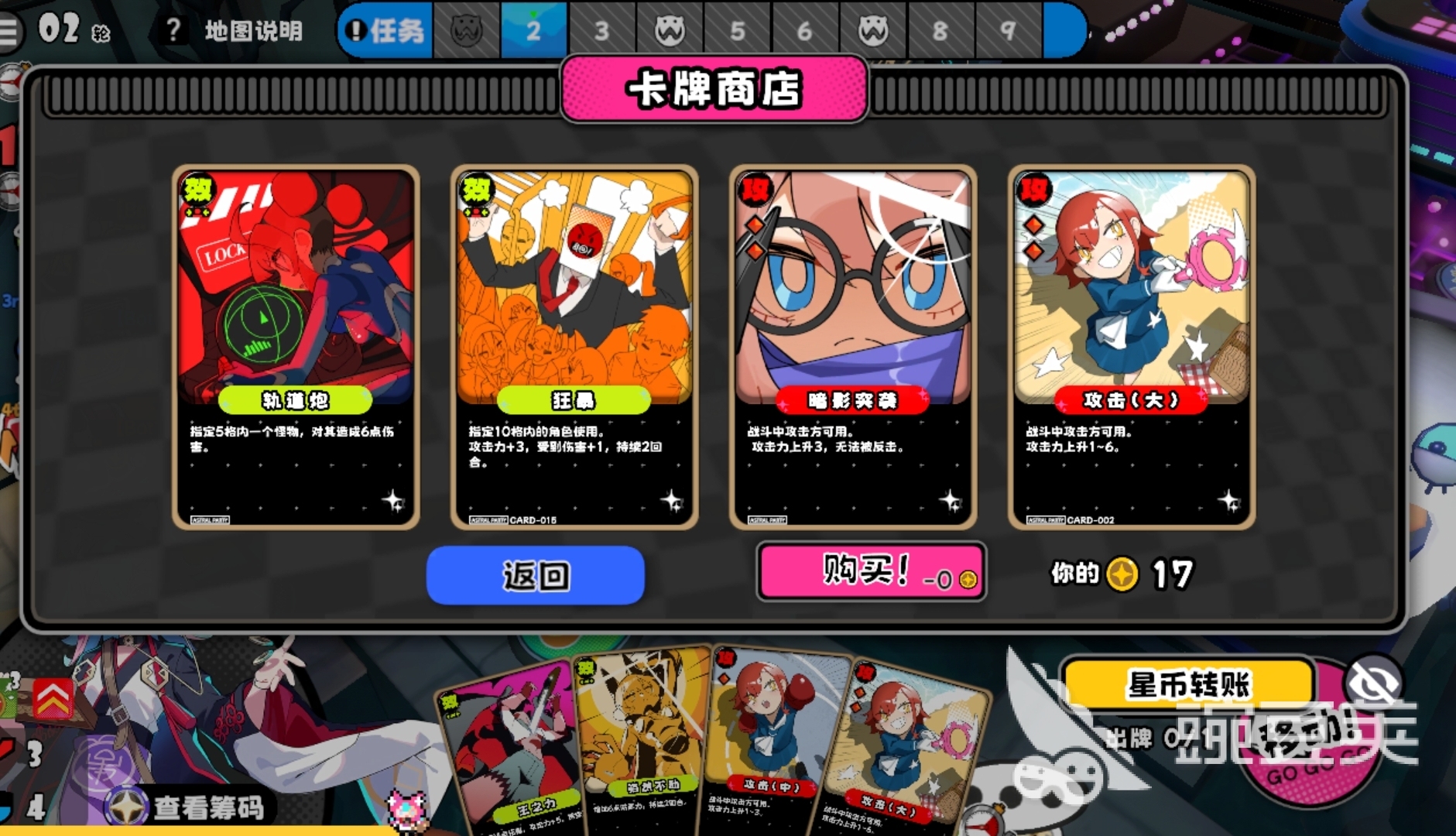 PVE战斗逻辑沿用基础骰子驱动机制,但资源使用策略与PVP存在本质差异。主动攻击时,玩家可借由路过怪物触发战斗,通过技能效果、手牌加成等方式提升基础攻击力,并投掷骰子结算最终伤害;被动接战则依赖骰子判定闪避成功率与格挡强度。值得注意的是,PVE中星币不再承担PVP中的升星优先级压力——除升星外,星币仅用于商店购牌。因此,无需囤积等待特定判定时机,应抓住刷新机会及时购入目标卡牌,尤其优先储备具备真实伤害效果的手牌,以应对Boss高护甲或减伤机制。