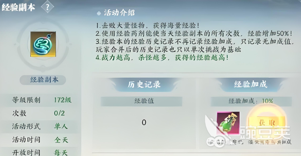想要获取经验的话怎么能少得了副本呢,游戏中的副本是可以重复进行挑战的,虽然重复挑战副本,材料掉落的次数会出现降低,但是副本出产的经验奖励却不会有任何的变化,对于哪些差一点经验就能升级的顽疾啊来说,挑战副本也是最好的刷经验的地方,只要一键挂机刷去就行了,不过需要注意的是,大家在刷经验的时候一定要在体力充足的时候进行哦,这样能够要经验最大化的进行转化。