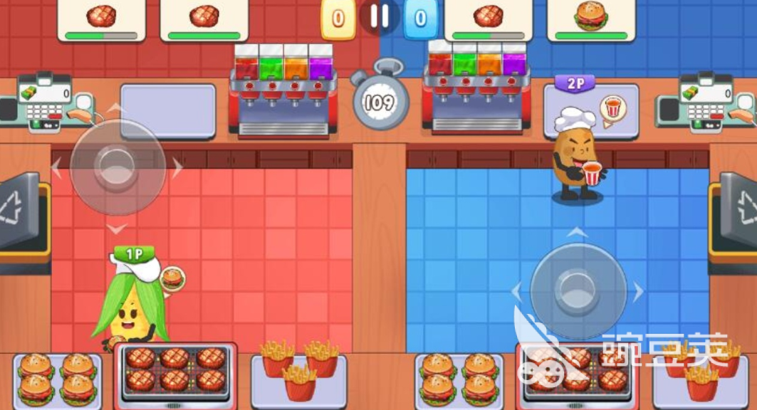 两个人可以一起打理一家小店,大家要分工干活,有人负责处理各类食材,有人守着灶台烹饪。还需要随时应对突发状况,游戏中的角色全是水果蔬菜变的人形模样,看着就比较有趣。在合作模式之下,两个人的分工效率直接决定能不能把店开好,如果切换到对战模式,就可以和对手比一比谁做的菜更好,玩法比较贴近日常做饭的场景,很容易让人有代入感,而且全程需要频繁的互动。