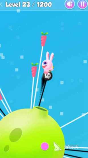 游戏采用了无限大转盘式的地图设计,转盘四周交错分布着胡萝卜和炸弹两种道具。玩家的任务是操控小兔子,在不断转动的盘面之上完成跳跃动作,想要拿到积分,就需要精准落在胡萝卜所在的位置,一口将其吃掉。游戏的难度会随着进程逐步提升,转盘的转动速度也会越来越快,一旦碰触到炸弹,此前积累的所有分数都会清零。