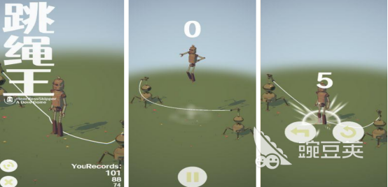 简单的操作方式,屏幕上将会看到一个简约的小人物通过跳绳的方式突破自己的高分,核心的要求就是通过点击屏幕成功跳过绳子,但是想让其中的人物角色跳得更高,那么就可以长按屏幕。按压屏幕的时间越长,人物角色跳跃的距离也会越高。每次成功跳过绳之后都可获得相应的分数,可在规定的时间之内看看自己的分数有多高。