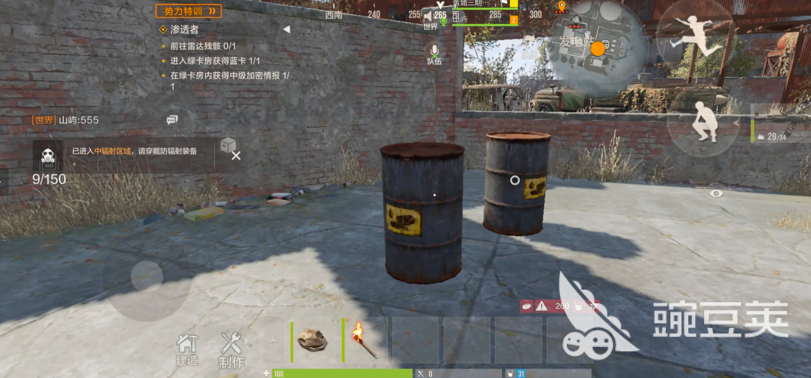 最后说说油桶的获取,这个东西是矿场采集的必需品。不同威胁等级的据点产出数量不一样。低威胁的大铁球据点,在铁球最顶端有两个油桶。中威胁的发电站,在电梯口旁边能找到2个。高威胁的火箭发射基地,左下角位置有一个。小型油井钻井平台这个地方比较特殊,每一层都会刷新油桶,加起来最少有4个。