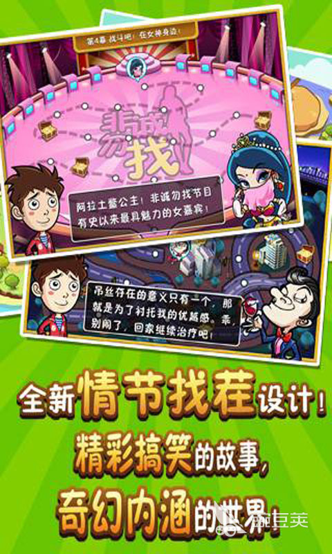 《史上最牛找茬》这部作品魅力四射的设计在于,在以找茬为玩法的核心根基上,有新意无穷的把故事情节进行了引入,刻画出了各种异想天开的故事章节,都需要大家眼光如炬的去找到那些指定的找茬点,游戏还添加了数以万计的图库,而且在找茬机制上,更是运用了高难的动态化设计。