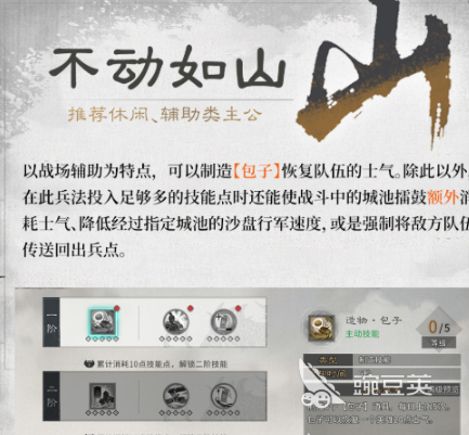 不动如山这就是阵地防御的主要选择,可以制造道具,去恢复队伍的士气。投入足够技能点之后,还能给城池擂鼓额外消耗敌方的士气,降低敌军在沙盘行军时的速度,甚至可以强制性把敌方的队伍直接传到出兵点。在关键城池布置这套兵法之后,就能有效提升防线的韧性,通过减速的效果,可以牵制敌军的攻击节奏。难知如阴就成为高手专属的翻盘利器,主要的特点是强化个人队伍,技能效果多样性,并且还有随机性。不过特殊技能就需要去收集对应的道具才可以激活,例如强化自身队伍的实力,还有入场满觉醒能量。