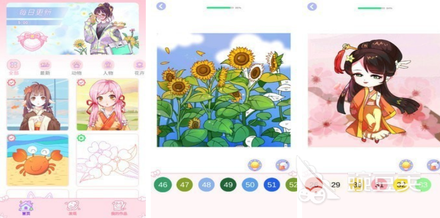 采用数字编码填色机制,界面极简,上手零负担。每幅图由清晰线条构成,涵盖人物肖像、日常食物及生活用品等主题,对应区域标注数字编号,玩家依号选色即可还原完整画面。关卡节奏舒缓,支持自由配色模式——打破预设方案,用主观审美重构图像,激发创意延展性。