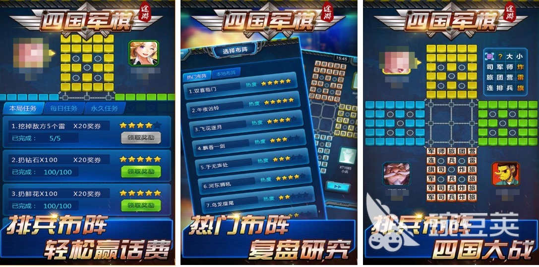 本作是途游公司旗下唯一一款棋类主题的手游佳作,最大特色就是融入了四人下军棋的模式,复盘系统和残局模式这些高难度玩法也很有趣,四国大战的军棋博弈机制让大家眼前一亮,存在排兵布阵的玩法还设有真实的军棋规则,方方正正的棋盘设定像极了真实的军棋,军旅主题的背景气氛与军棋元素更是做到完美结合。