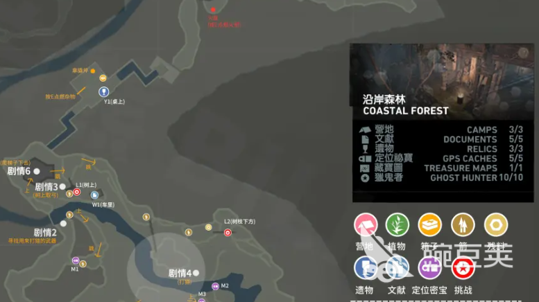 失落探险家古墓的位置位于沿岸森林附近,具体的位置,小编已经在图片中为大家标注出来了,各位小伙伴跟着剧情顺序直接前往即可。如果说实在找不到的话也没关系,当你靠近古墓附近的时候,系统也会在左下角给你发送一个比较明显的提示消息,跟着系统的提示走就可以找到。失落探险家古墓的入口是一个不太明显的洞穴,在进去之后小伙伴们需要先左拐,然后看到一块木板,通过这块木板,你可以继续往上爬,一直爬到第2层石阶为止。
