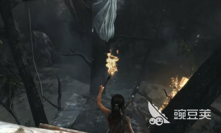 在所有的柱子都成功燃起之后,小伙伴们会发现还有一根柱子点不着。在这堆柱子的边上有一个货物堆,小伙伴们需要跳到这堆货物堆上面,然后继续往上跳,抓住上方的横木,把上面的火盆给抖落下来。这个火盆掉下来之后,就会把这堆货物给点燃,并引燃货物中的细线,一路烧至最后一根柱子,顺利将其点燃。此时飞机就可以成功坍塌了,玩家们也能够顺利的进入机身去寻找最后的宝藏。