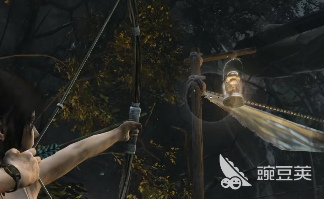 此时你的眼前会出现三个灯笼,需要把它们给捡起来,然后再往前扔,在灯笼的照耀下,你可以看到前方有两个木桩,上面裹着布条。翻过去之后可以看到在另一面有着一个尸体,他的头上悬挂着一个灯笼,你需要用弓箭把这个灯笼给射下来,然后灯笼中的火种就会把底下的柱子给点燃。接下来走到柱子面前,把它给推倒,让它一路去点燃其他的柱子。