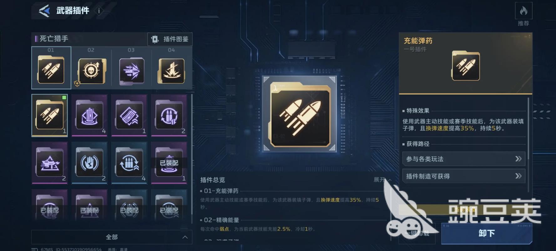 想要用好这把武器,那玩家首先还需要注重于插件的搭配。1号插件可以选择充能弹药,在面对大批量的怪物围攻时,就可以持续的输出火力,避免因为弹药不足而陷入到被动中。2号插件选择多球回能,这一个插件就可以加快技能能量的恢复效果,可以提升清场的效率。3号插件可以选择叠浪效应,让武器的伤害可以伴随着攻击的次数而逐渐的叠加,能够轻松的实现大范围的清理小怪。当玩家赛季等级逐渐提升之后,积累足够的资源可以更换成毕业级的插件组合。