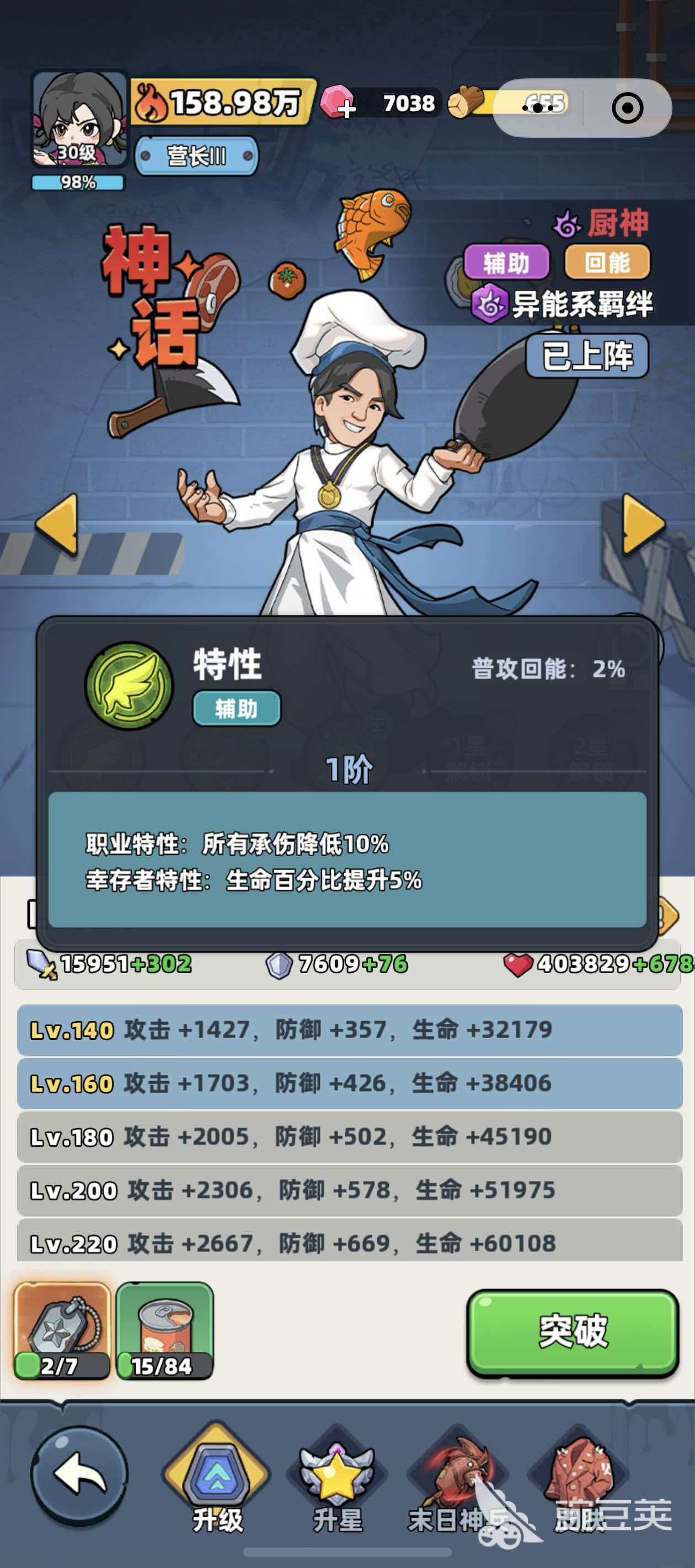 以上就是生存33天厨神这个角色的详细介绍了,在辅助型的角色里面,厨神这个角色是一个性价比非常高的英雄。很适合零氪的平民玩家去使用,不管是什么样的阵容,厨师的适配性都非常的额不错,尤其是在打高难度的副本时,厨神更是有着极为出色的表现。