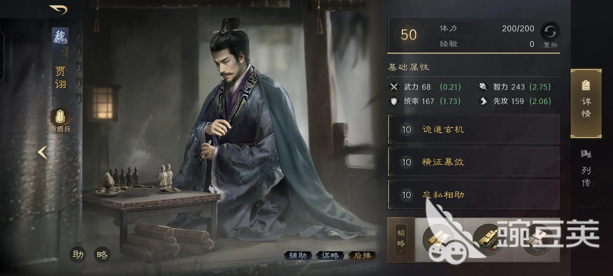三国谋定天下中贾诩强度解析:魏国弓兵体系的核心辅助兼输出型武将
