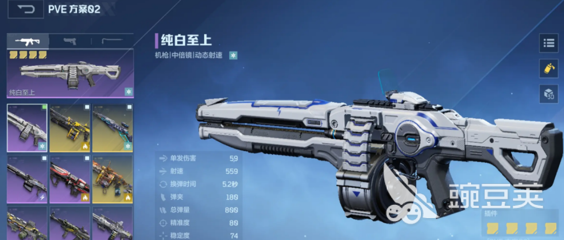 还有一把比较特殊的武器叫纯白至上,功能性比较强。新手进游戏就能领取,最大的优点是弹夹容量大,续航能力强。升级之后,会解锁暴击回血的被动技能,释放战术立场,还能给队友增加暴击率。如果你经常组队打副本,哪怕自己输出不是特别高,靠着这个群体增益效果,也能稳定拿到奖励。而且插件系统支持跨武器复用,后期换装备的时候,之前所投入的资源也不会浪费掉。