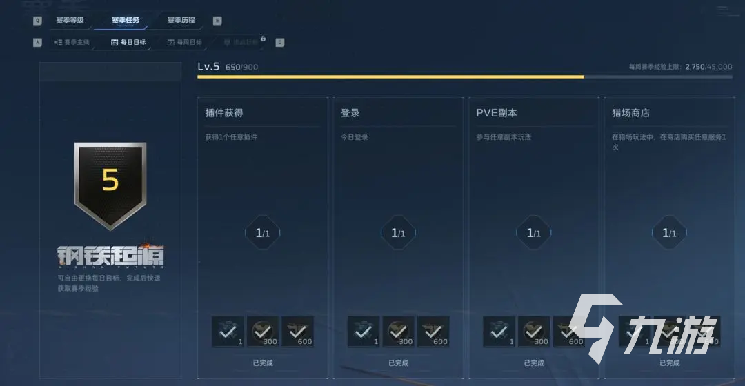 首先重点的就是任务系统,有每周,每日任务,还有赛季主线,挑战任务,前中期获取经验的重点来源就是这些任务,前面描述的顺序,其实就是大家去做任务的优先级,每日任务最简单,如果看到无法完成,或是难度较高的,直接刷新掉,正常情况下,基本上开两把就能全部做完,给的经验非常多。