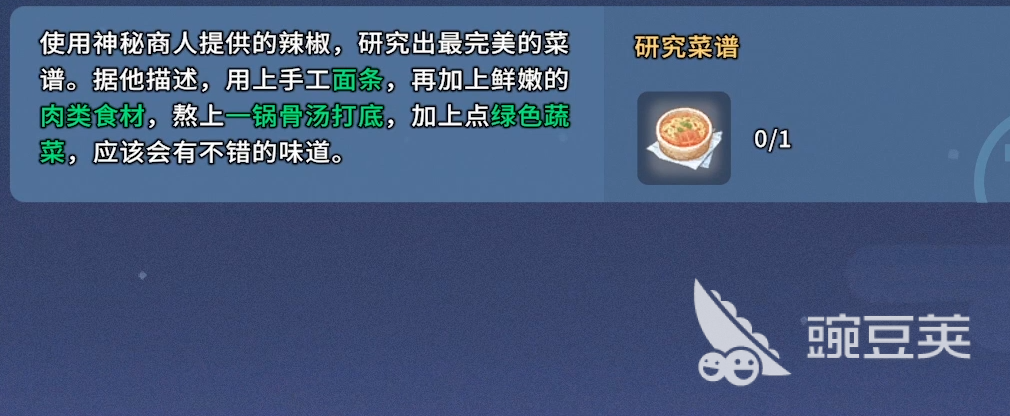 当玩家推进至游戏中期,可在地图中偶遇神秘商人,并触发名为“如此美食”的专属任务。该任务以香料应用为核心机制,要求玩家使用商人提供的基础香料组合,最终完成一道具备“麻辣鲜香”特征的面食——即小面。任务整体难度适中,无时间限制与失败惩罚,适合各阶段玩家尝试。