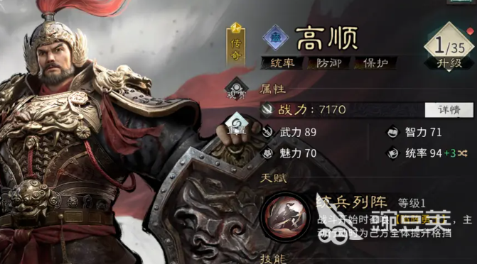高顺:获取难度比较低,培养成本并不高。可以支撑起队伍前排的重任。核心天赋统兵列阵,在战斗一开始时就可以召唤陷阵勇士的属性。相当于给整个队伍多增加一个前排坦克位置,抵抗伤害的能力就可以翻倍。主动行动时就可以给我方全体叠加格挡率,因此拥有较好的优势。比较适合的阵容是高顺,蔡文姬,还有貂蝉。三个英雄都很容易获取,对于品质要求较低,在安排阵容时,高顺可以站在前排,蔡文姬还有貂蝉就可以放在辅助位置,这一套阵容操作比较简单,强度在线。