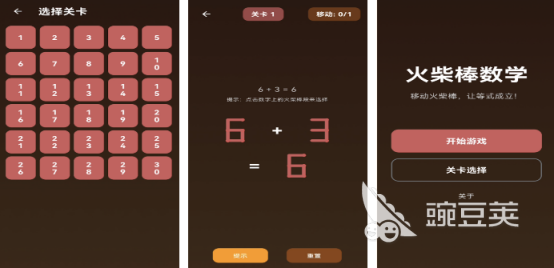 每个关卡开始后都会看到不同的算式,这个算式并不成立,就比如6+3=6下方也会看到由火柴棍组合而成的等式,那么核心的任务就是通过点击数字上的火柴棒通过移动的方式使整个等式成立,比如移动等号后面六的火柴棍之后就能形成九,那么这样的等式就可以成立,还可完成闯关。