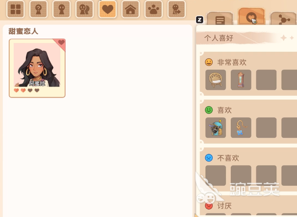沙石镇时光阿蜜拉喜欢物品非常多,除了上面分享的物品之外,还比较喜欢装饰品,可以根据对方的需求选择性的赠送,游戏里每个成员都会有自己喜欢的物品类别,在和对方沟通对话的时候,角色一般都会表达出来,玩家要按照对方的兴趣送礼,否则好感度不会提升,反而会因为送的礼物不喜欢而下降。