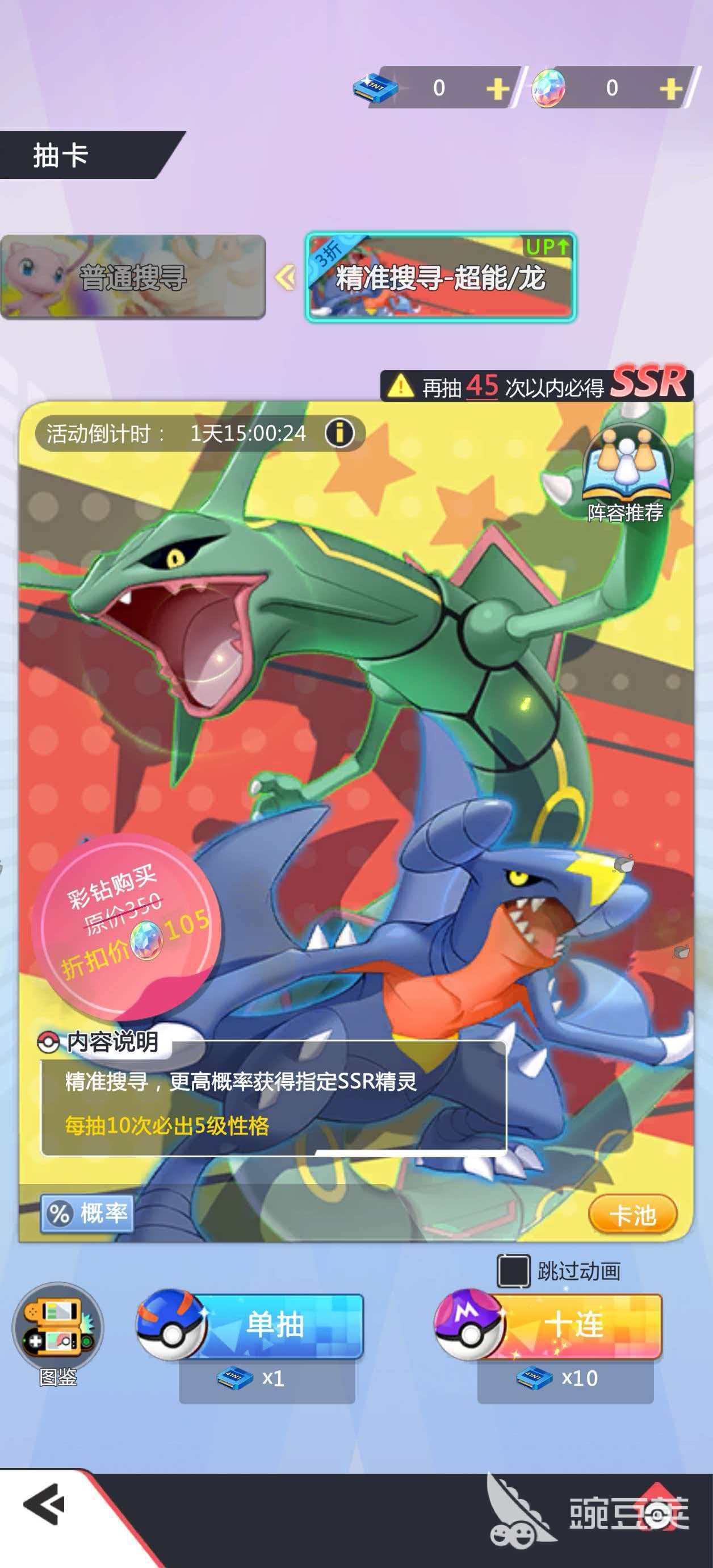 进阶龙系战力需通过卡池获取,其中裂空座为当前版本T0级稀有精灵,拥有高爆发与强控场能力。建议新手在首周限时抽卡活动中集中资源抽取,该阶段设有专属折扣机制,单次获取成本显著低于常态卡池。若首抽即得,可直接节省大量养成素材与体力消耗。
